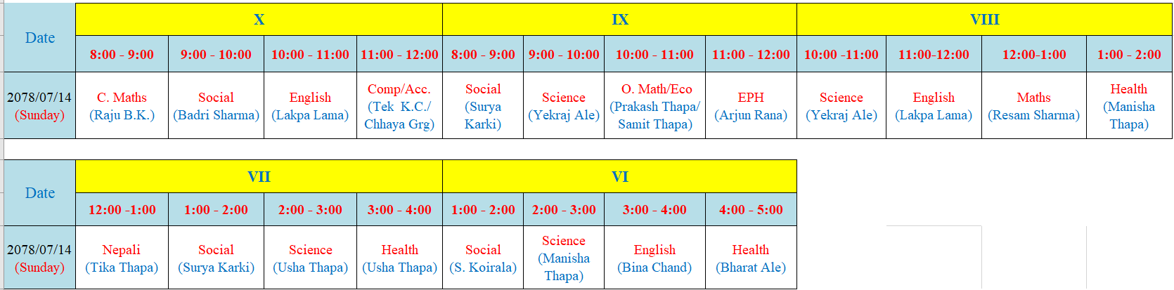Class Routine